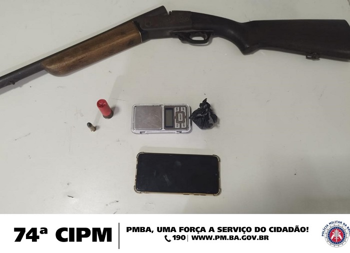 Policiais da 74ª Companhia Independente de Polícia Militar, em parceria com a 76ª CIPM, prenderam um indivíduo por posse ilegal de arma de fogo, munições e drogas, nesta sexta-feira (13), no povoado de Rodeadouro, zona rural de Juazeiro. A ação ocorreu após relatos de populares sobre movimentações atípicas no local, que, segundo a notificação, havia suspeita de tráfico de drogas no endereço indicado.