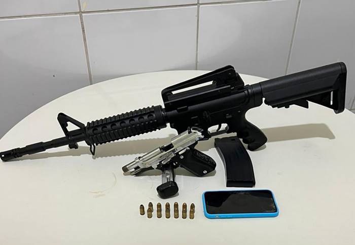 Policiais militares da Rondesp Norte, ligada à 74ª Companhia Independente (CIPM), apreenderam em Juazeiro (BA), na noite de quinta (3), uma pistola 380 e um simulacro de fuzil calibre 556. A ação ocorreu durante patrulhamento tático pelo Residencial Praia do Rodeadouro.