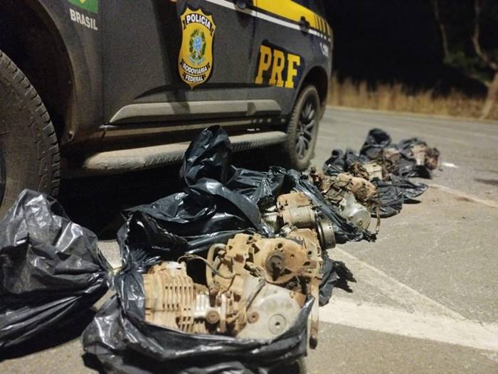 Diante do flagrante, os motores foram apreendidos e encaminhados à 27ª Delegacia de Polícia Civil (Recanto das Emas). (Foto: PRF).