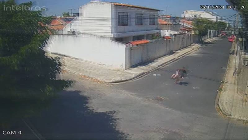 Ela tenta correr, mas tropeça e cai. Nesse momento o bandido pega a bolsa da vítima e foge saltando o muro do antigo Centro da Juventude. Ela ainda corre atrás do criminoso, mas sem sucesso (confiram no Instagram @blogcarlosbritto.com).