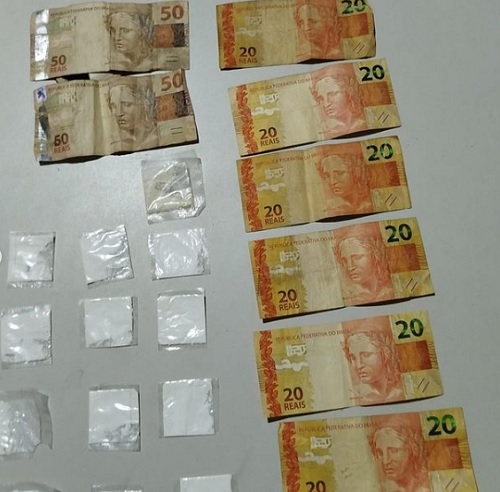 Os policiais receberam denúncias de que em uma festa no povoado de Lagoa do Pires, havia uma suposta venda de drogas no banheiro de um quiosque.A PM identificou um homem que estava com 13 papelotes com substância análoga à cocaína e R$ 320 em espécie.