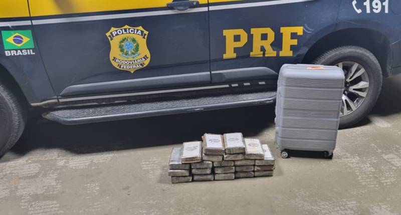 A Polícia Rodoviária Federal (PRF) apreendeu 22,7 kg de cocaína durante fiscalização em um ônibus interestadual na BR116, em Vitória da Conquista (BA), no dia de ontem (2). A droga estava em uma mala no bagageiro externo do veículo, que fazia a linha São Paulo (SP)/Maceió (AL).
