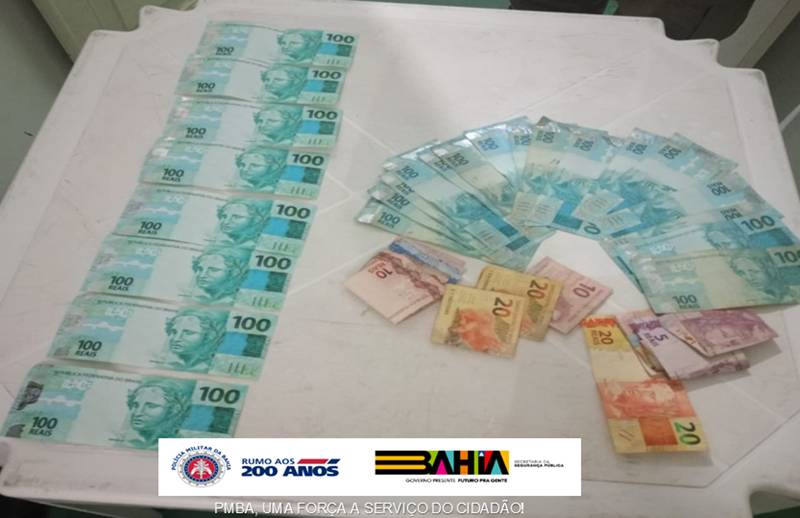 De posse das características dos indivíduos, as patrulhas iniciaram as buscas, quando encontraram o trio – que foi interceptado, abordado e, após as buscas, imediatamente apreendido. Com eles foram encontrados R$ 800,00 em notas de R$ 100 aparentemente falsificadas e R$ 1.768,00 em notas diversas, sem indícios de falsificação.