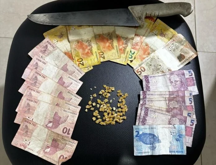 O homem conseguiu fugir dos policiais. No local onde ele estava, a PM encontrou 80 pedras de substância semelhante ao crack, a quantia de R$ 257 em espécie e uma faca tipo peixeira.