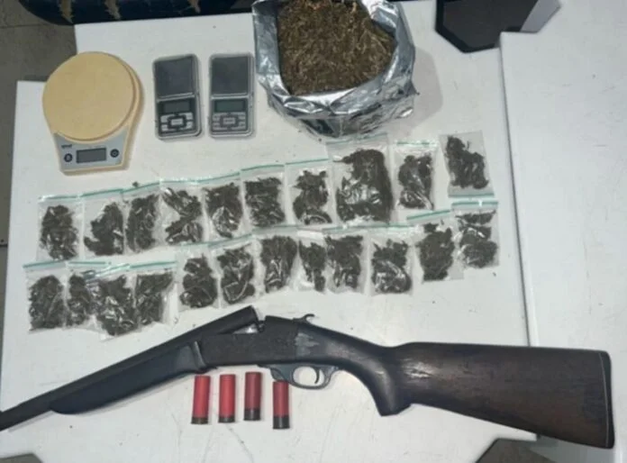 “Diante das informações, as GEs Tático RONDESC, GT 5.122 e 5.104, se deslocaram ao local informado e apreenderam uma espingarda Calibre 12 (1377880 MCD 151); quatro munições do mesmo calibre intactas e 320 gramas de maconha”, informou o 5º BPM.