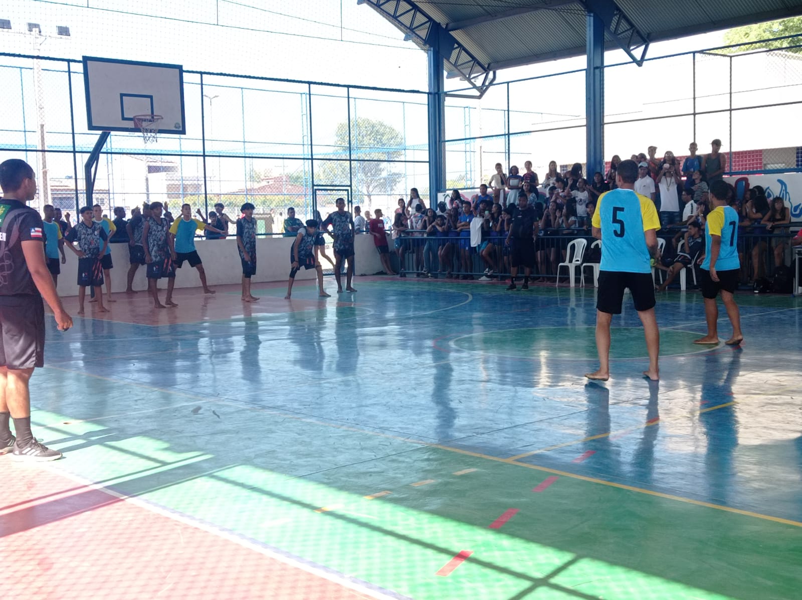 O dia foi de festa na ala esportiva do Colégio Democrático Estadual Professora Florentina Alves dos Santos (Codefas). A escola recebeu, nesta quarta-feira (30), as partidas de futebol society e baleô da 45ª edição dos Jogos Escolares de Juazeiro. Durante toda a manhã, uma torcida eufórica e amistosa movimentou o espaço.