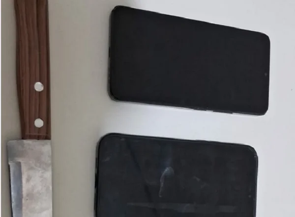Durante a abordagem, foram encontrados três aparelhos celulares e uma faca. Os materiais foram entregues aos familiares dela. (Foto: PM).