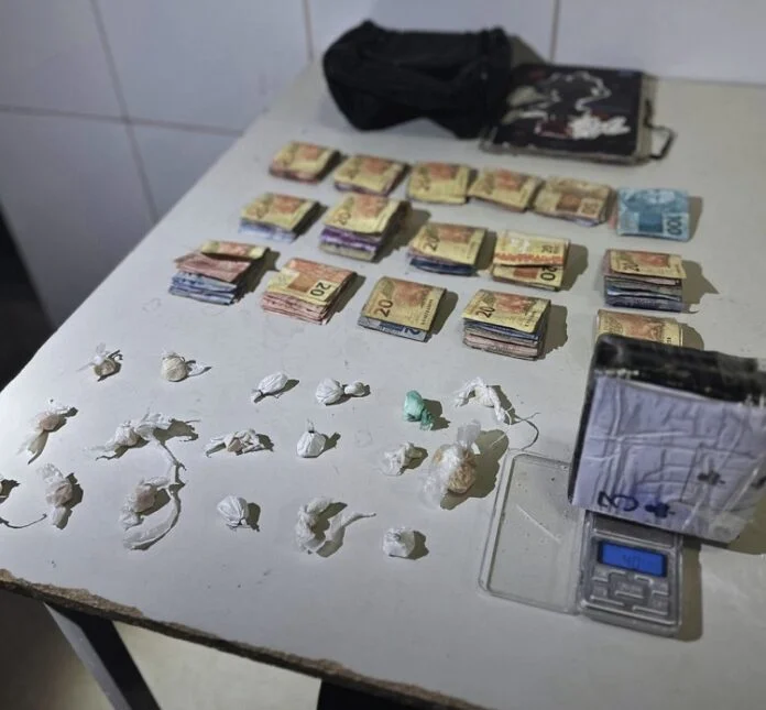 “Após abordagem, constatou-se que o material descartado tratava-se de substâncias entorpecentes. Diligências adicionais foram realizadas, resultando na apreensão de mais substâncias, dinheiro em espécie e um caderno com anotações relacionadas ao tráfico”, informou a polícia.
