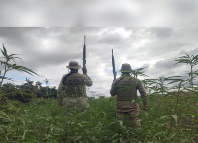 Durante a ação, os policiais localizaram uma roça de maconha nas proximidades da Ilha, próximo ao povoado de Pedra Branca, totalizando 18 mil pés da erva.