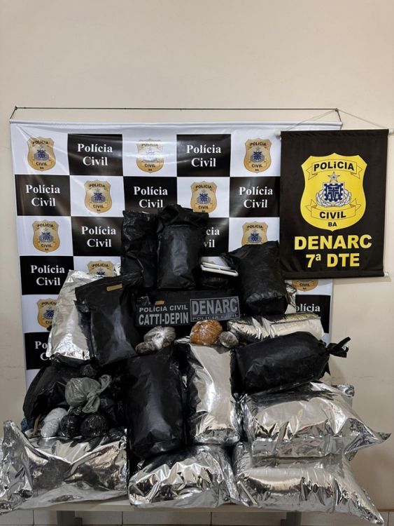 -Na diligência um homem de 38 anos, foi preso em flagrante na posse de aproximadamente 38kg de maconha, fracionados em 36 sacos e 20 “dolões”, além de uma balança de precisão e a quantia de R$ 354,00 (trezentos e cinqüenta e quatro reais) em variadas cédulas.: 7ª DTE – DENARC