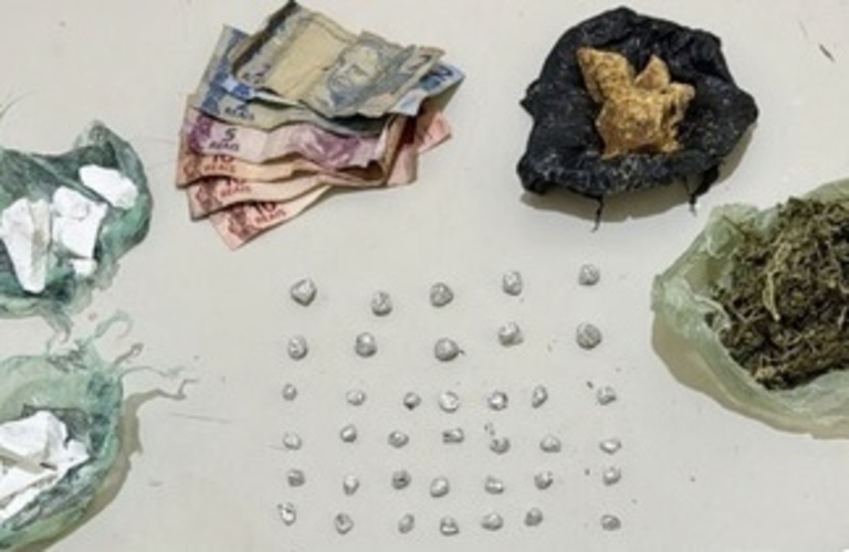 De acordo com a PM, durante uma ronda de rotina, a suspeita chamou atenção em atitude considerada suspeita. Na abordagem, foram encontrados maconha, cocaína, crack, uma balança de precisão e dinheiro em espécie.