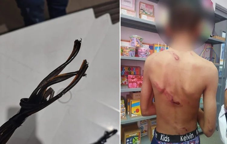 O corpo do garoto está cheio de machucados provocados por fios de cobre. Ainda não se sabe há quanto tempo a criança vinha sendo agredida e torturada.