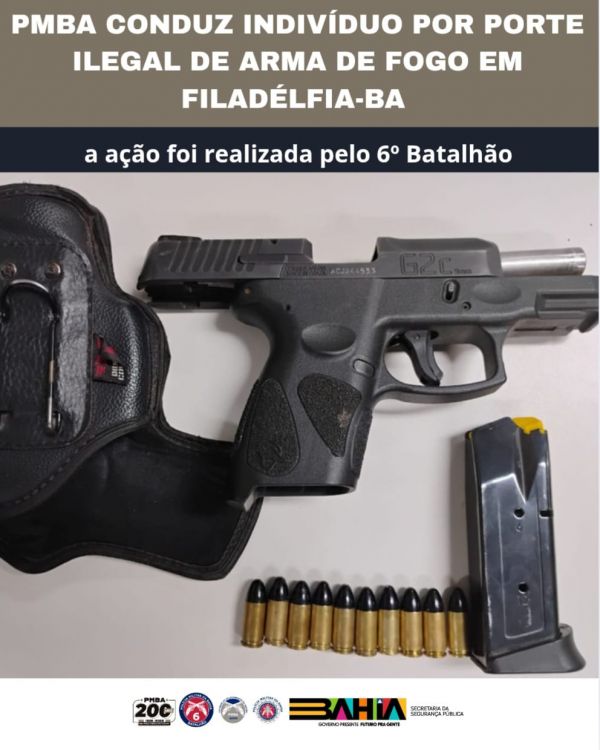Neste domingo (28) por volta de 3h30, uma Guarnição da 4°CIA RURAL, quando realizava policiamento preventivo e ostensivo nas imediações do circuito festivo em Filadélfia-BA, visualizou um indivíduo portando um volume suspeito na região da cintura.