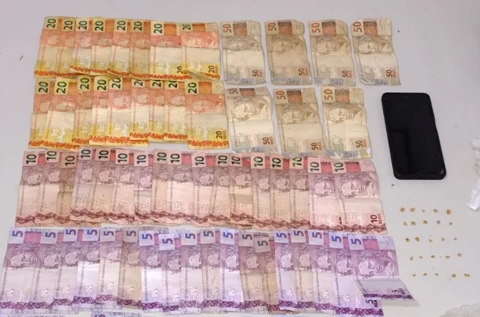 Segundo a PM, foram encontradas certa quantidade de substância análoga à cocaína, uma quantia em dinheiro e um celular.