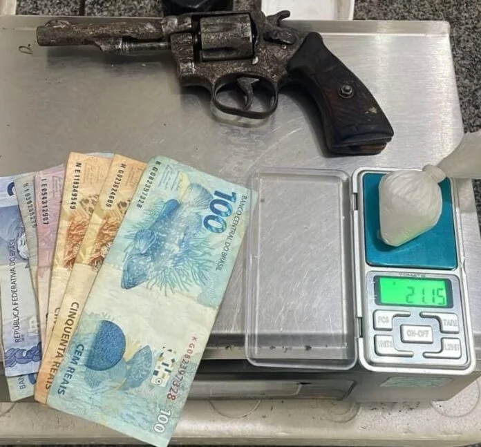 A PM encontrou com os homens 21g de cocaína e um revólver calibre 32, marca Taurus, com numeração ilegível.
