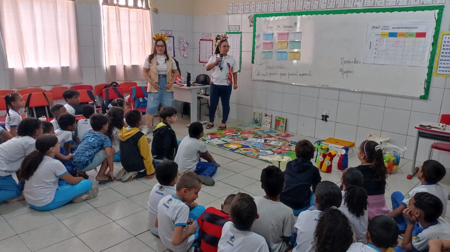 Durante a gincana, os estudantes participaram de atividades lúdicas que reforçaram a leitura, escrita e cálculos matemáticos.