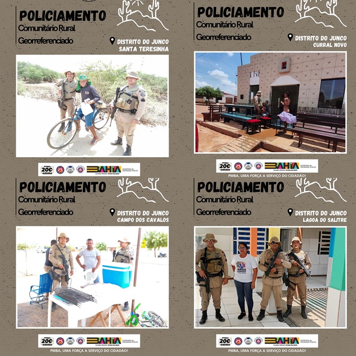 A Polícia Militar da Bahia (PMBA), por meio do Comando de Policiamento da Região Norte (CPR-N), comandado pelo Cel PM Wildon Teixeira dos Reis e da 74ª Companhia Independente de Polícia Militar Rural (74ª CIPM/Rural), sob o comando do Maj PM Alexandro Reges de Sena, deu continuidade, neste sábado (08), à Operação Patrulhamento Comunitário Rural Georreferenciado.