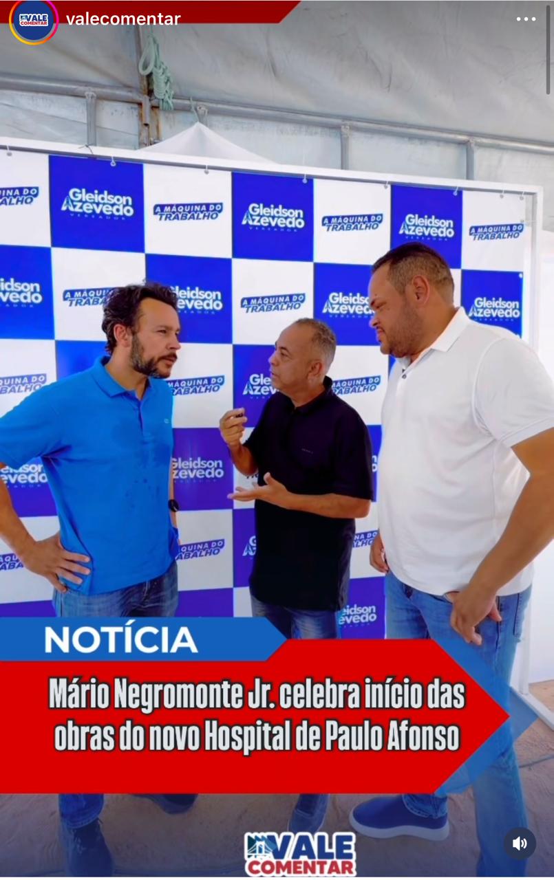 O deputado federal Mário Negromonte Jr. celebrou o início das obras do novo Hospital Nair de Souza, em Paulo Afonso (BA), um dos maiores investimentos em saúde do interior baiano, orçado em R$ 159 milhões. O hospital terá 165 leitos e atenderá toda a região, ajudando a desafogar a rede de saúde de Juazeiro e municípios vizinhos.