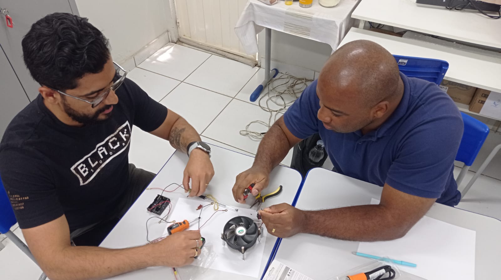 Durante o encontro, os professores foram estimulados a apresentarem ideias inovadoras para melhorar o seu ambiente educacional, a partir da temática sustentabilidade. “A partir dessa ideia apresentada, os professores estão construindo instrumentos que podem ser trabalhados na escola, para que, em um segundo momento, utilizando sucata, material eletrônico, fios, LEDs e motores, eles consigam construir protótipos que contribuam para o dia a dia da escola”, explicou o formador Matheus Vinícius Vidal.