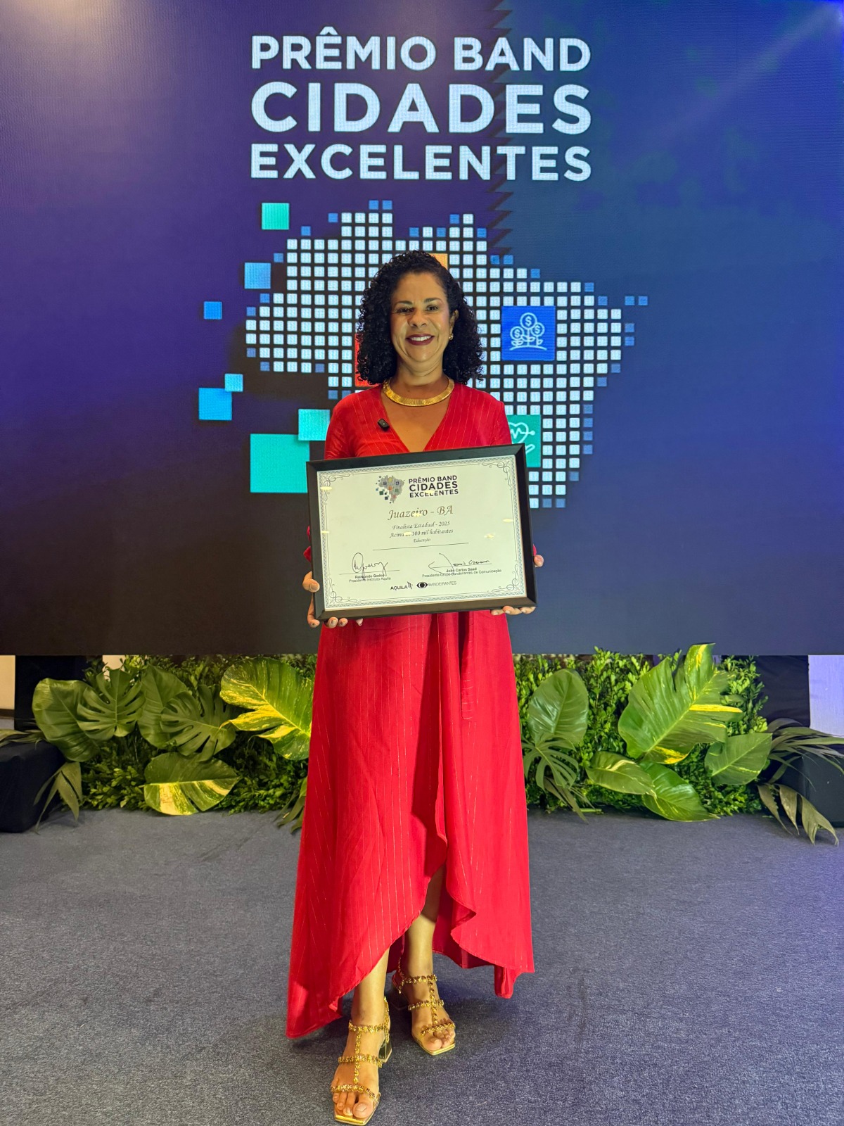 A Prefeitura de Juazeiro foi uma das vencedoras do prêmio “Band Cidades Excelentes”, no pilar Educação, entre as cidades baianas com mais de 100 mil habitantes. O prêmio foi recebido na noite desta terça-feira (18) pela secretária de Educação Maéve Melo, que representou o prefeito Andrei Gonçalves.