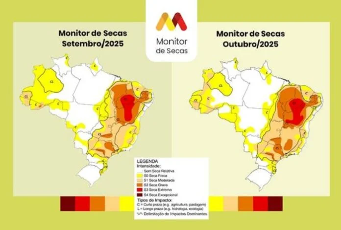 Conforme a atualização mais recente do Monitor de Secas, entre setembro e outubro, em termos de severidade, houve intensificação do fenômeno em quinze estados: Alagoas, Bahia, Ceará, Maranhão, Pernambuco, Piauí, Goiás, Mato Grosso do Sul, Minas Gerais, Rio de Janeiro, São Paulo, Paraná, Amazonas, Rondônia e Tocantins.