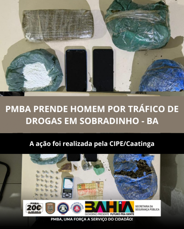 A Polícia Militar da Bahia, por intermédio da Companhia Independente de Policiamento Especializado – Caatinga (CIPE/Caatinga), prendeu nesta quinta-feira (11), um indivíduo por tráfico de drogas na cidade de Sobradinho – BA.