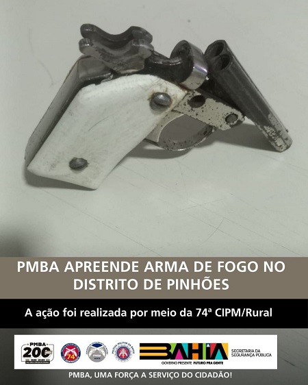 A Polícia Militar da Bahia, por meio da 74ª CIPM/Rural, apreendeu, neste domingo (14), uma arma de fogo calibre .22, no distrito de Pinhões.