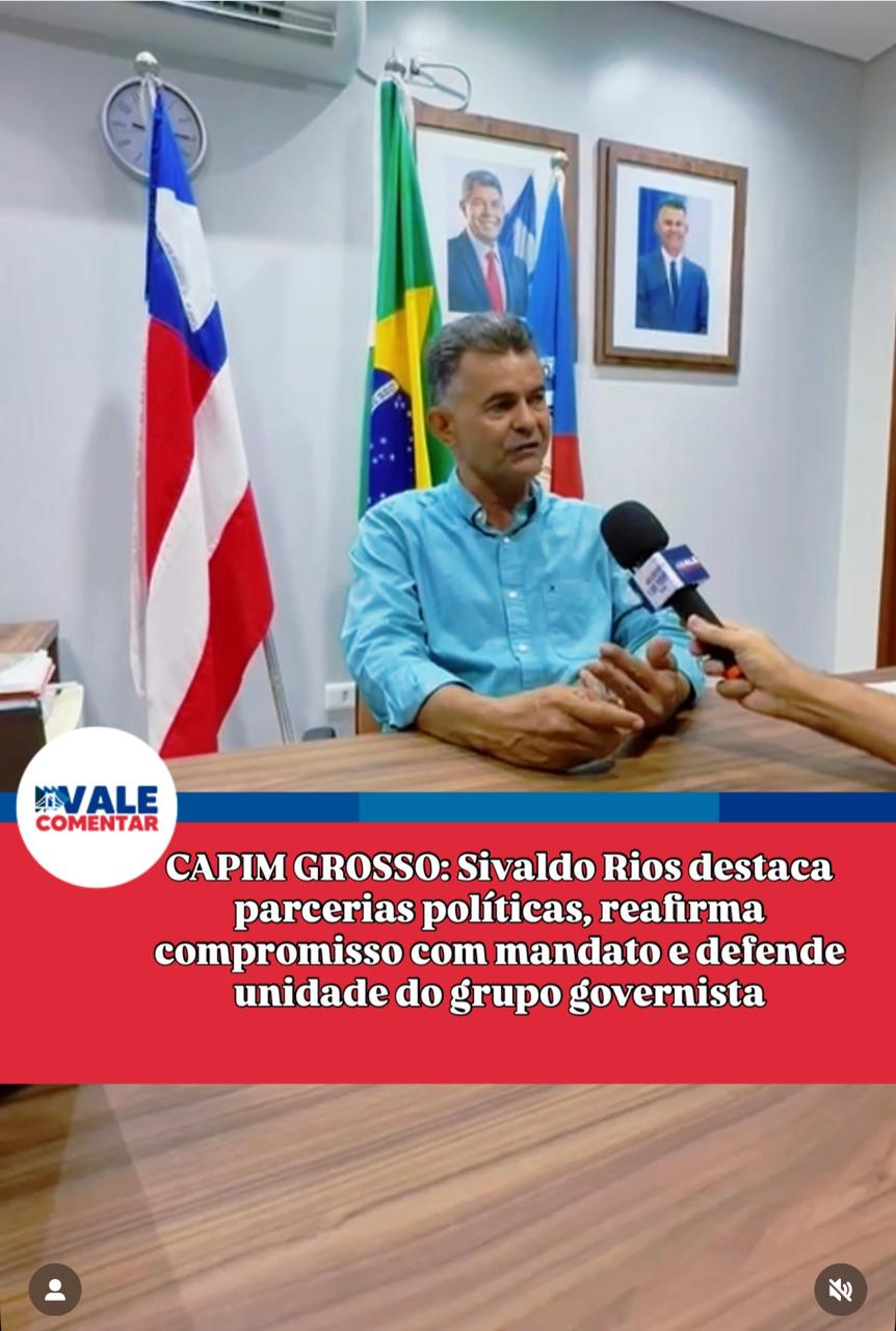 Na segunda parte da entrevista concedida ao Blog Vale Comentar, o prefeito de Capim Grosso, Sivaldo Rios, reforçou seu compromisso com o cumprimento integral do mandato e fez questão de reconhecer o apoio recebido ao longo de sua trajetória administrativa, especialmente por parte dos governos estaduais.