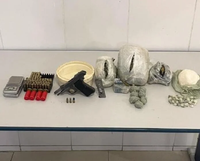 O ponto funcionava em um barraco utilizado para a venda e consumo de drogas. Ninguém foi achado no local. Os policiais apreenderam uma pistola PT 765, com 01 carregador; 714 gramas de maconha; 226 gramas de cocaína; 354 gramas de crack; quatro munições calibre 12; 50 munições deflagradas calibre 38; 22 munições deflagradas calibre 380; e duas munições intactas calibre 765.