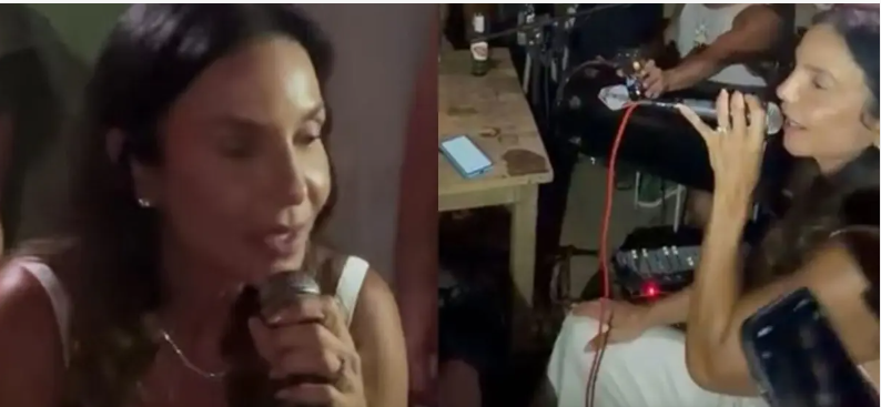 Ivete Sangalo não abandonou o microfone nem mesmo na folga antes de engrenar no verão. A artista, que aproveita o período de descanso em Trancoso, surpreendeu clientes de um bar na região do Quadrado ao dar uma palhinha para o público.