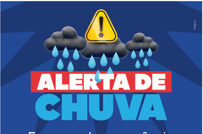 O Instituto Nacional de Meteorologia do Brasil-INMET divulgou alerta a partir desta segunda-feira (19), previsão de Chuva entre 20 e 30 mm/h ou até 50 mm/dia, ventos intensos (40-60 km/h). Baixo risco de corte de energia elétrica, queda de galhos de árvores, alagamentos e de descargas elétricas.