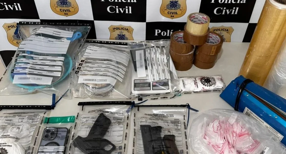 Entre os itens recolhidos estão porções de substância semelhante à cocaína, uma pistola calibre 9mm, carregadores e dezenas de munições do mesmo calibre, além de dois aparelhos celulares, que devem auxiliar no aprofundamento das investigações.
