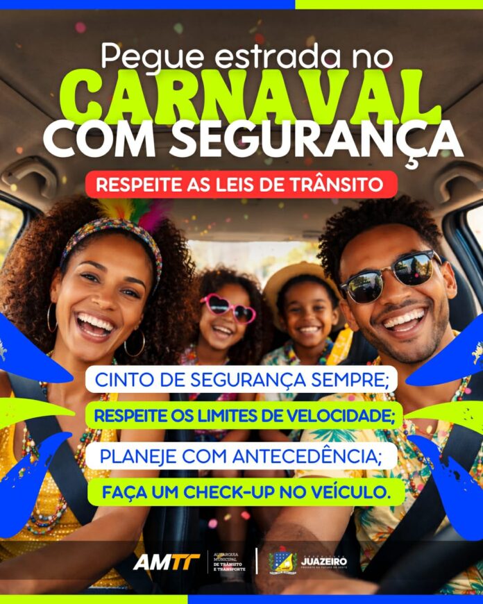 O Núcleo de Educação para o Trânsito da Autarquia Municipal de Trânsito e Transportes (AMTT) reforça as orientações para que, neste feriado de Carnaval, todos realizem uma viagem segura e tranquila, adotando cuidados essenciais antes e durante o deslocamento.