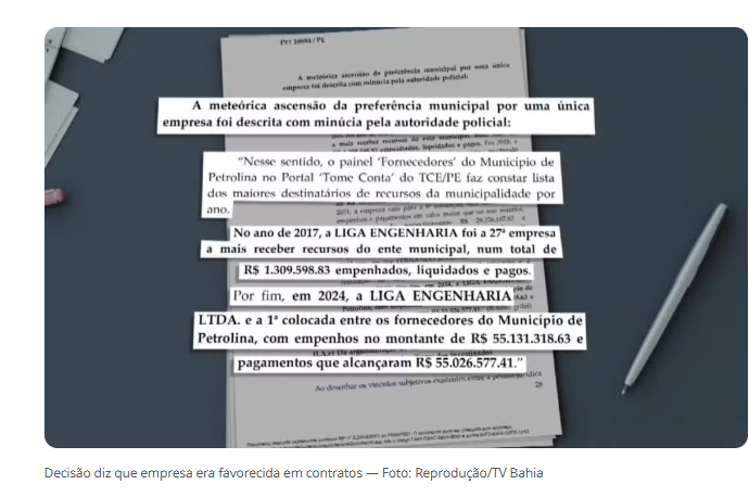 Os dados e valores pagos estão disponíveis no portal “Tome Conta” do Tribunal de Contas de Pernambuco, onde há uma lista dos maiores destinatários de recursos de Petrolina. Em 2017, a Liga Engenharia LTDA recebeu valores do município de mais de R$ 1,3 milhão. Saltando para mais de R$ 55 milhões em 2024.