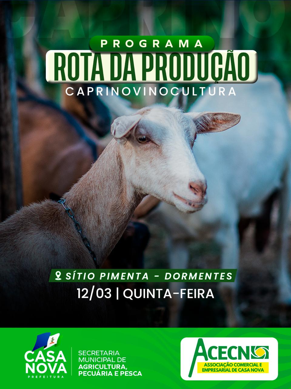 A Prefeitura de Casa Nova, por meio da Secretaria Municipal de Agricultura, Pecuária e Pesca, está implantando o Programa Rota da Produção, uma iniciativa que visa fortalecer os produtores rurais do município por meio de intercâmbios, capacitações e troca de experiências.