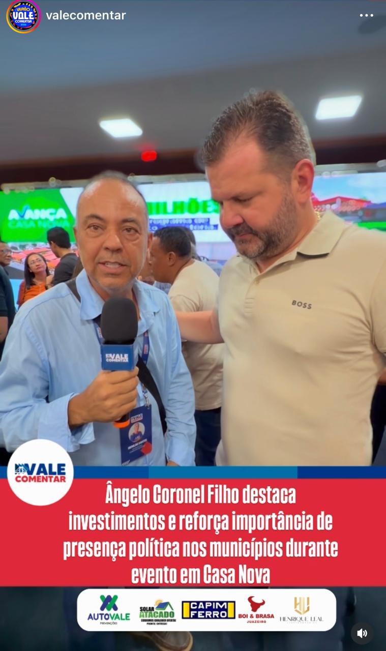 Durante a cobertura do pacote histórico de investimentos em Casa Nova, o Blog Vale Comentar entrevistou o deputado estadual Ângelo Coronel Filho, que ressaltou a importância das obras anunciadas e o impacto direto para a população.