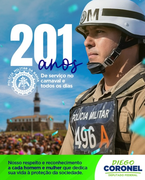 O deputado federal Diego Coronel homenageou os 201 anos da Polícia Militar da Bahia, destacando a relevância histórica e o papel fundamental da corporação na proteção da população baiana.