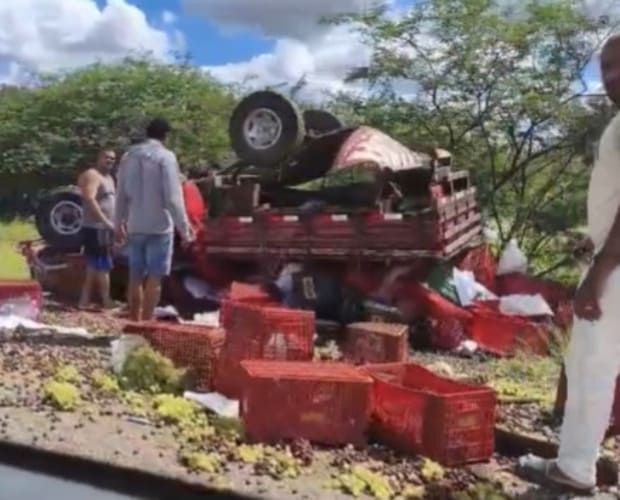 Um acidente foi registrado no início da tarde deste domingo (29), na PE-636, próximo ao Km 18, no Perímetro Irrigado Maria Tereza, Zona Rural de Petrolina. Informações dão conta de que uma caminhonete carregada de uvas capotou na via.
