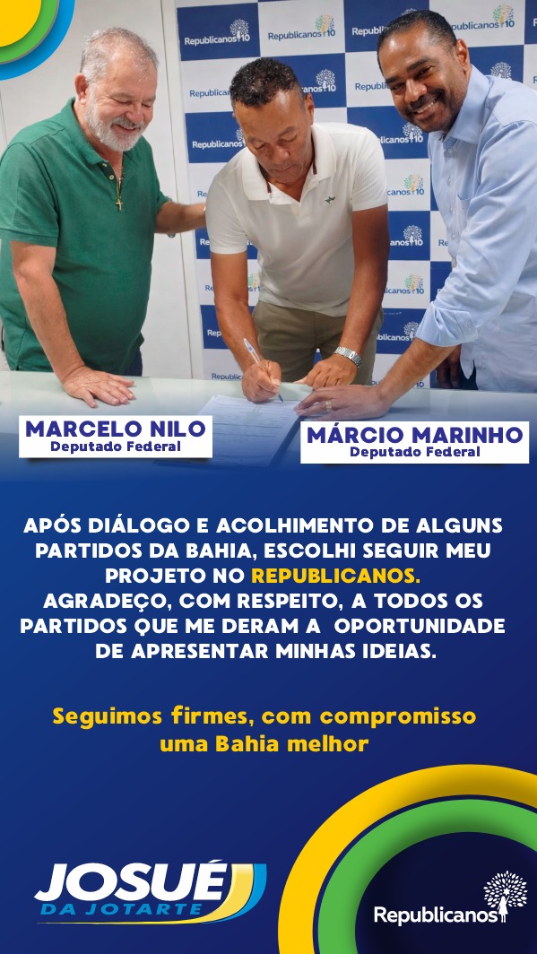 Nos bastidores, a filiação de Josué já movimenta o cenário político. Com perfil empreendedor e forte ligação com o esporte, ele surge como um nome alinhado às demandas de renovação, com discurso voltado à modernização da política e à eficiência na gestão pública. Segundo o próprio pré-candidato, a escolha pelo Republicanos foi estratégica. “Após diálogo e acolhimento de alguns partidos da Bahia, escolhi seguir meu projeto no Republicanos. Agradeço com respeito a todos que me deram a oportunidade de apresentar minhas ideias”, afirmou.