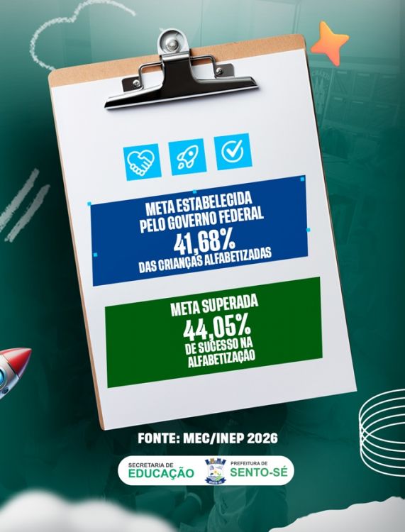 Para a prefeita Giselda Carvalho, o avanço evidencia a efetividade das ações adotadas pela gestão. “Os números mostram que Sento-Sé está avançando com planejamento e responsabilidade, superando a meta do MEC como resultado de um trabalho coletivo, com foco na aprendizagem e no futuro das nossas crianças”, afirmou.