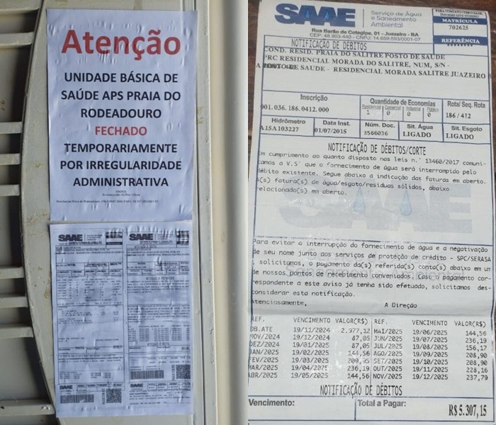 Com o aviso foi afixado uma conta do SAAE no valor de R$ 5.307,15 que seria a pendência de responsabilidade da secretaria de acordo com o termo de cooperação celebrado pela gestão do ex-prefeito Paulo Bomfim e que não foi renovado.