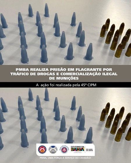 A Polícia Militar da Bahia (PMBA), por meio da 45ª Companhia Independente de Polícia Militar (45ª CIPM), realizou a prisão em flagrante de um indivíduo por tráfico de drogas e comercialização ilegal de munições no município de Rodelas-BA.