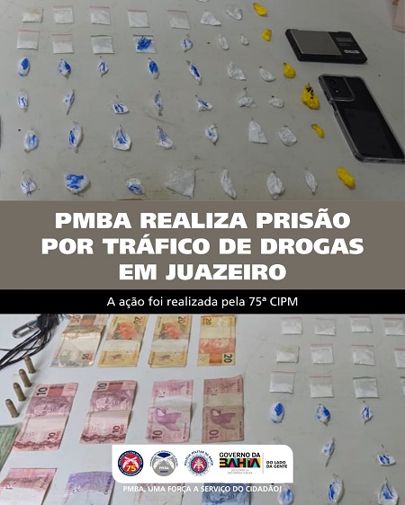 Na tarde desta segunda-feira (13), policiais da 75ª Companhia Independente de Polícia Militar (CIPM) realizaram a prisão de um indivíduo por tráfico de drogas no bairro Itaberaba, em Juazeiro-BA.