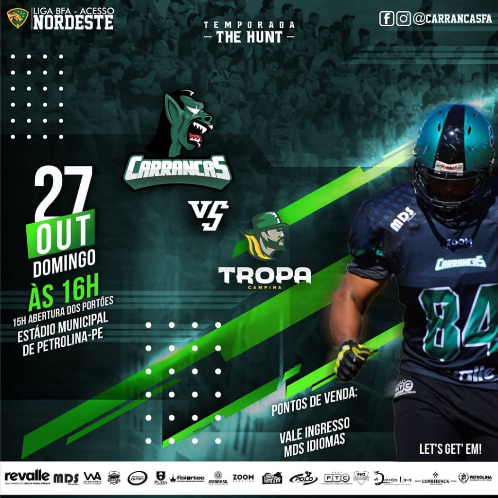 Já classificado para os play-offs (mata-mata) da Liga BFA – Acesso Nordeste, o Carrancas Futebol Americano entra em campo no próximo dia 27/10 (domingo) com um objetivo: encerrar a fase de grupos com 100% de aproveitamento.