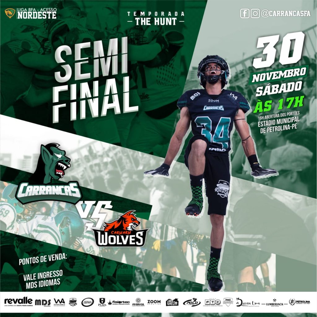 No próximo dia 30/11 o Carrancas entra em campo pela semifinal, contra o Caruaru Wolves, às 17h no Estádio Paulo Coelho, em Petrolina (PE). É a oportunidade para mostrar que o Sertão tem força no futebol americano.