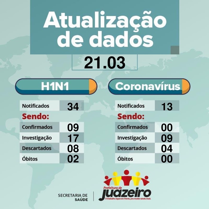 Segundo o Boletim, Juazeiro possui 34 notificações, sendo nove casos confirmados para H1N1 incluindo dois óbitos, 17 casos estão em investigação e oito casos suspeitos de H1N1 já foram descartados.