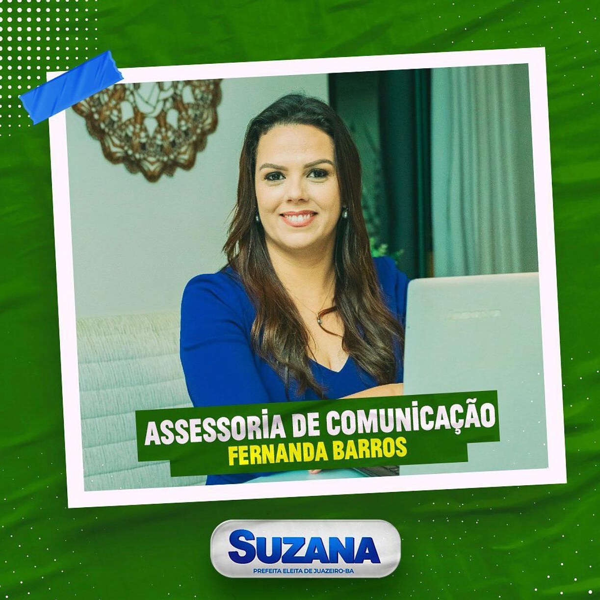 A Assessoria de Comunicação da Prefeitura Municipal de Juazeiro ficará sob a responsabilidade da jornalista Fernanda Coelho de Barros. A informação está nas redes sociais da prefeita eleita da cidade, Suzana Ramos (PSDB).