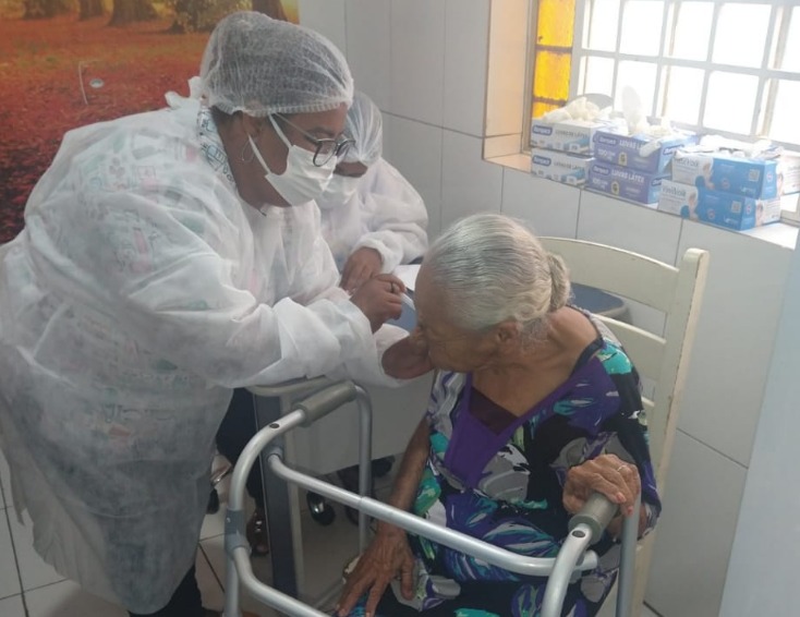 Nesta quinta-feira (21), a Secretaria de Saúde de Juazeiro, seguindo o plano municipal de imunização, começou a vacinar idosos acima de 75 anos que vivem em instituições de longa permanência. Os idosos do Lar São Vicente de Paulo receberam a primeira dose da vacina CoronaVac, fabricada pelo Instituto Butantan. Foram vacinados 26 idosos, seguindo os critérios da Fase 1 do Plano Nacional de Imunização.