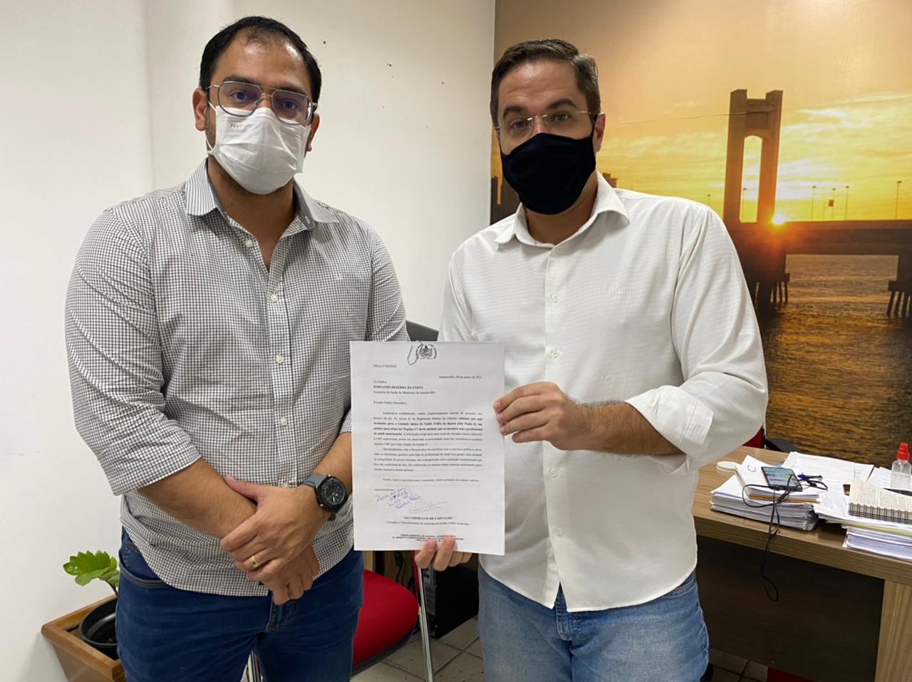 Nesta quarta-feira, 10/03/2021, o Vereador e médico, Salvador Carvalho cobrou do Secretário Municipal de Saúde de Juazeiro, Fernando Costa; a contratação de profissionais de saúde para as Unidades Básicas de Saúde (UBS) dos bairros: Antônio Guilhermino, João Paulo II e Parque Residencial. No mês de fevereiro, o especialista em Saúde da Família e Comunidade visitou e percebeu a falta de profissionais e medicamentos nas UBSs.