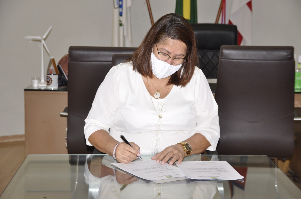 A solenidade, realizada no gabinete da prefeita, contou com a participação do secretário de Desenvolvimento Social, Mulher e Diversidade, Teobaldo Pedro, da sua superintendente de Políticas Sociais, Bethânia Amorim, da diretora de Habitação, Quisa Benevides, e da representante da Projesol, Alexandra Almeida.